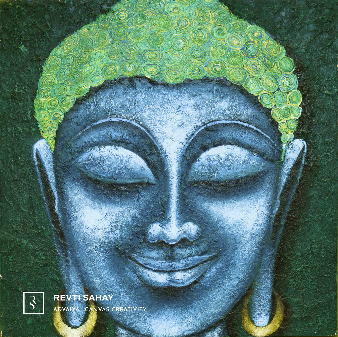 This imaginary creation by the artist captures the serene smile of Buddha, symbolizing eternal peace and calm. The gentle expression embodies a sense of inner tranquility, inviting viewers to reflect on the timeless message of enlightenment. The artwork transcends mere depiction, offering a visual journey into the profound stillness and wisdom that Buddha’s smile represents.